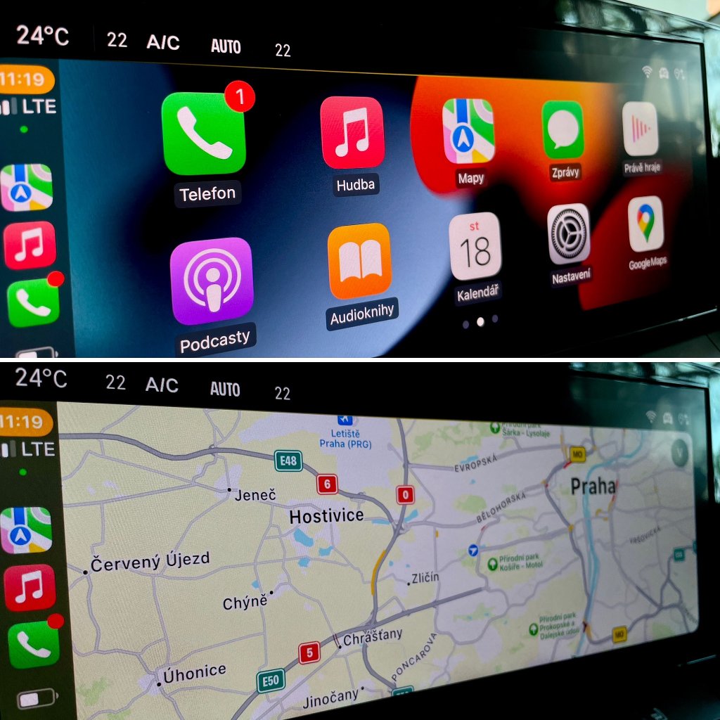 - Integrace smartphonu Apple CarPlay a Android Auto