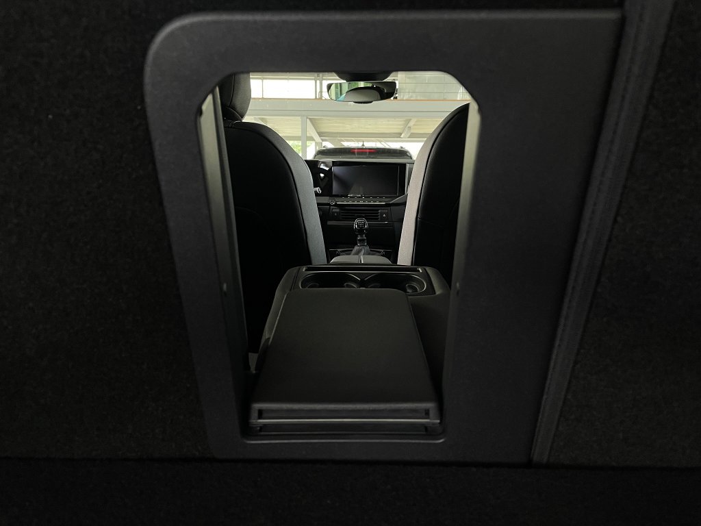Zadní sklopná loketní opěrka s průchodem