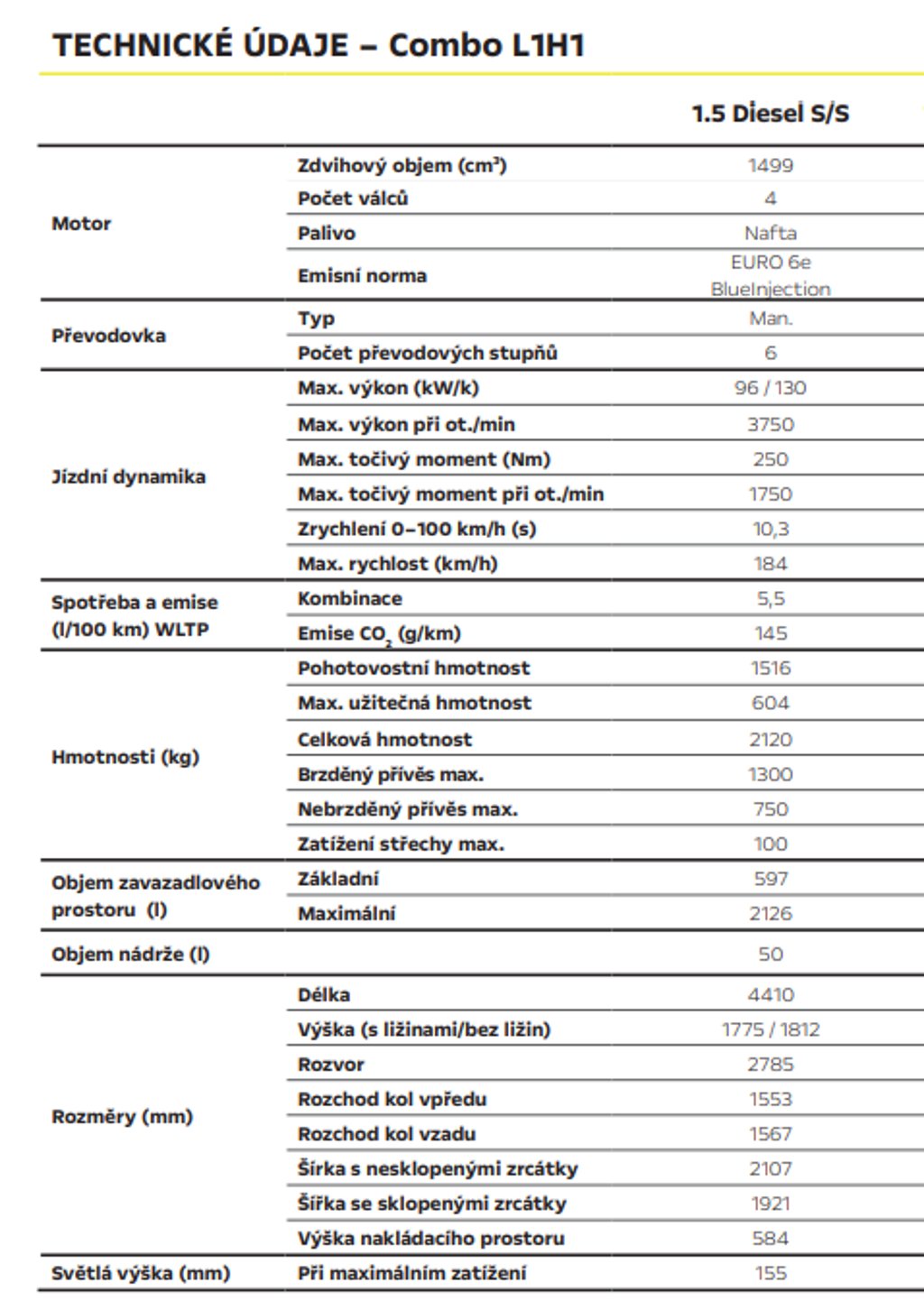 | Zdvihový objem | 1 499 cm3 |