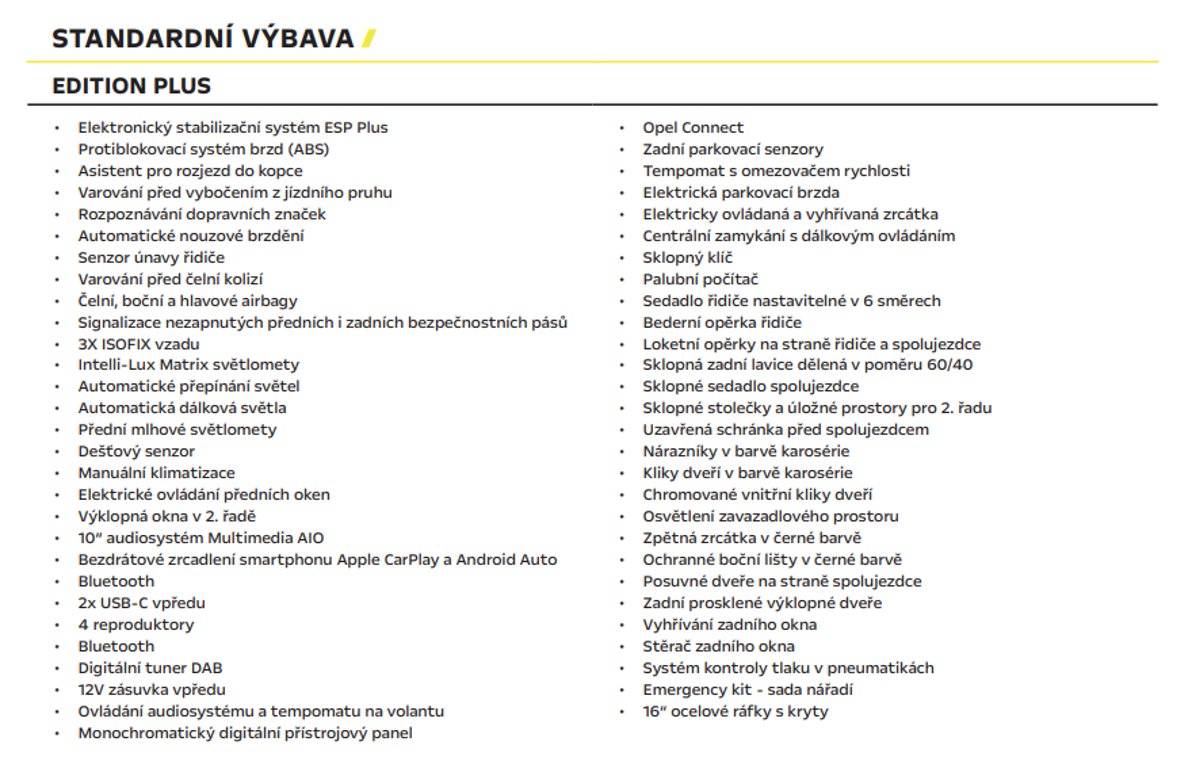 STANDARDNÍ VÝBAVA VOZU: