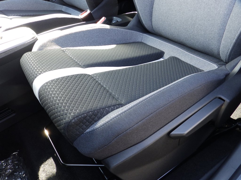 BMFR: Sada Komfort - ergonomická přední sedadla Intelli-Seat, látkové čalounění Gap vyrobené z recyklovatelných materiálů, černošedé se světlými detaily, bederní opěrka, nastavitelné opěrky hlavy vpředu, vyhřívaná přední sedadla, vyhřívaný volant z vegan kůže, vyhřívané čelní sklo, automatická klimatizace