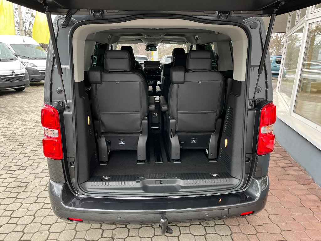 ABS + EBA + EBD + ESP + ASR + Pomoc při rozjezdu do svahu Airbag řidiče a spolujezdce s možností deaktivace Boční a okenní airbagy vpředu Automatické protikolizní brzdění a varování před čelní kolizí Aktivní systém varování před vybočením z jízdního pruhu Čtení dopravních značek Tempomat, omezovač rychlosti, inteligentní rychlostní asistent Detekce únavy a nepozornosti řidiče Nouzové a asistenční volání Výškově nastavitelné opěrky hlavy pro všechna sedadla Výškově nastavitelné bezpečnostní pásy Úchyty Isofix na všech sedadlech ve druhé řadě Centrální zamykání s dálkovým ovládáním Automatické zamykání za jízdy (deaktivace v případě dopravní nehody) Kontrola tlaku vzduchu v pneumatikách (nepřímá) Světelný a dešťový senzor Automatické dálkové světlomety Posilovač řízení Výškově a podélně nastavitelný volant Výškově nastavitelné sedadlo řidiče s loketní a bederní opěrkou Tlumiče s variabilním odpružením v závislosti na zatížení vozidla (AMVAC) Zadní výklopné dveře s vyhřívaným oknem a stěračem Kotevní úchyty na podlaze (4 pro verze L1; 6 pro verze L2) Sada na opravu pneumatik Elektricky ovládaná přední okna (s jednodotykovým ovládáním) Vrstvené akustické čelní sklo, zesílená boční okna řidiče a spolujezdce Odkládací přihrádky ve středu palubní desky, u spolujezdce, ve dveřích Držáky na nápoje v horní části palubní desky Zásuvka 12 V v palubní desce Okenní airbagy pro druhou a třetí řadu Úchyty Isofix na všech sedadlech ve třetí řadě Elektricky sklopná vnější zpětná zrcátka LED přední světlomety Přední mlhové světlomety 10“ barevný digitální přístrojový panel Sluneční clony řidiče i spolujezdce s osvětleným zrcátkem Lakované nárazníky, ochranné lišty, kliky, kryty zpětných zrcátek Systém kontroly trakce IntelliGrip (ASR+) Elektrická parkovací brzda pro 2.0 CDTi Přední parkovací asistent Zadní parkovací kamera se zorným polem 180° Sledování mrtvého úhlu Samozatmavovací vnitřní zpětné zrcátko Bezklíčový přístup a startování vozu Kožený volant Kola z lehkých slitin 17“ Boční posuvné dveře s elektrickým ovládáním Boční pevná extra zatmavená okna ve druhé a třetí řadě Uspořádání sedadel 2+3+3, čalounění perforovanou kůží Elektricky nastavitelná vyhřívaná přední sedadla Lavice ve druhé a třetí řadě sklopné, posuvné po kolejnicích Protisluneční roletky ve druhé řadě sedadel 2x USB ve druhé řadě, 230V zásuvka pod sedadlem spolujezdce Kobercová podlážka a vkládané textilní koberce vpředu i vzadu Pevný kryt zavazadlového prostoru za třetí řadou Automatická dvouzónová klimatizace Přídavná klimatizace vzadu, stropní rozvod a osvětlení Navigační systém 10“ se zrcadlením telefonu, 2x USB-C, Bluetooth, DAB Sada Audio: zesilovač a subwoofer